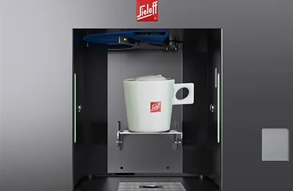 Der höhenverstellbare Tassentisch ermöglicht die flexible Nutzung mit unterschiedlichen Gefäßen – von der kleinen Espressotasse bis zum großen To-go-Becher.
